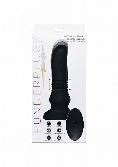 ThunderPlugs przedstawia wyjątkowy korek analny, który otworzy przed Tobą nowe możliwości! Znajdź ulubioną konfigurację z pośród 3 prędkości i 5 wariantów wibracji, a także 5 unikalnych trybów napierających pchnięć. Odważne wypukłości na powierzchni korka będą masować Cię podczas wsuwania i wyjmowania, ale ich najważniejszą funkcją jest przedłużenie korka, podczas gdy jest w Tobie! Pilot zdalnego sterowania zapewnia większą wygodę podczas zabawy solo, gwarantuje też więcej możliwości podczas pieszczot z partnerem. Bezprzewodowy i wodoodporny seks-gadżet został wykonany z najwyższej jakości silikonu, który gwarantuje bezpieczeństwo podczas użytkowania. Jest też idealnie gładki i wolny od ftalanów. Po użyciu wyczyść łagodnym mydłem i ciepłą wodą lub środkiem do dezynfekcji zabawek erotycznych. Produkt nie jest kompatybilny z lubrykantami na bazie silikonu.